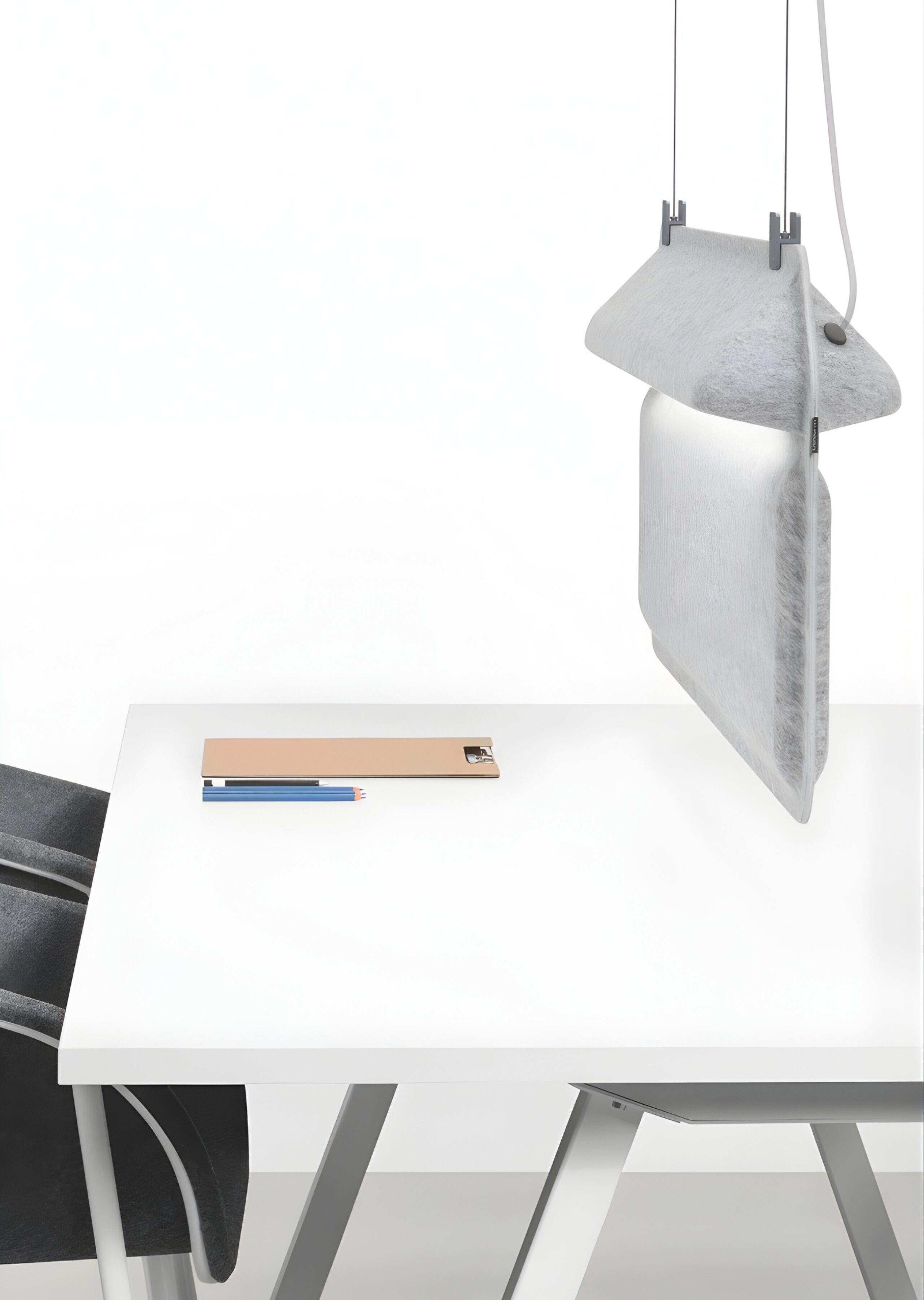 Designed by Ivan Kasner and Uli Budde, AK 2 PET Felt Workplace Divider Lamp combines workspace lighting, acoustic separation, and visual privacy in one product. The PET felt shell absorbs ambient noise, LED tubes light both sides of the desk equally, and the large form shields users from surrounding distractions. Available as a hanging or standing version, in 11 PET felt colours. For open-plan offices, study rooms, and co-working spaces.