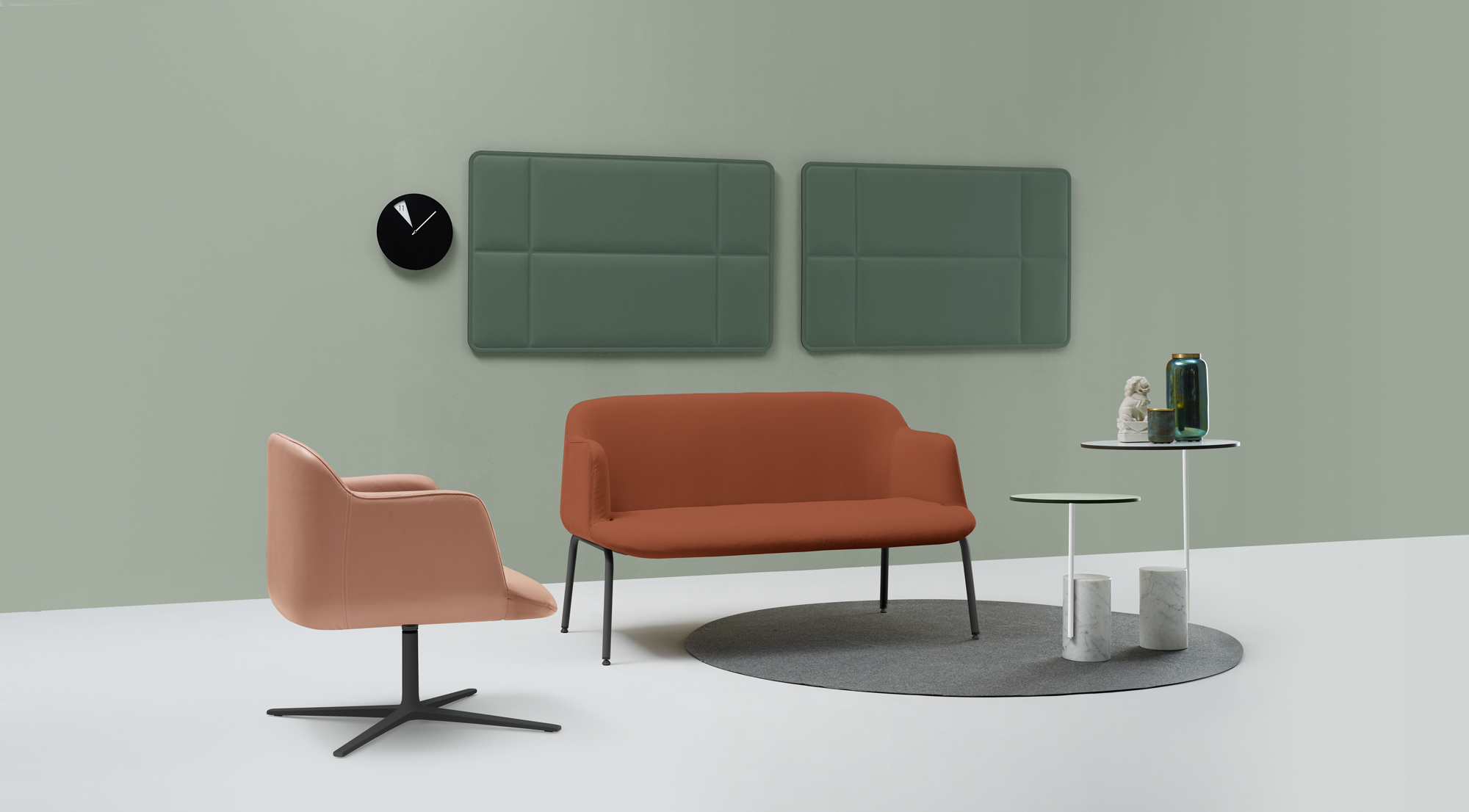 Retracing the lines of the collection to create new elegant and comfortable solutions. Armchairs and sofas with smooth shapes, able to assure versatile expression, customization and integrability.