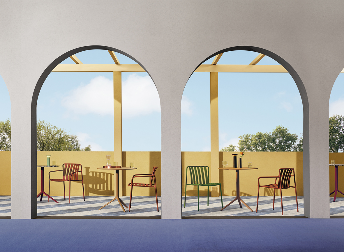 Table with three die-cast aluminium legs and three-lobed extruded aluminium column. Available combined with tops of different sizes and finishes.