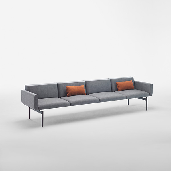 The collection offers a wide range of modular seats in different sizes and shapes that can be freely combined with different backrests, arms, tables and accessories. The original and elegant backrest support marks the identity of this versatile collection and adds a touch of distinction.