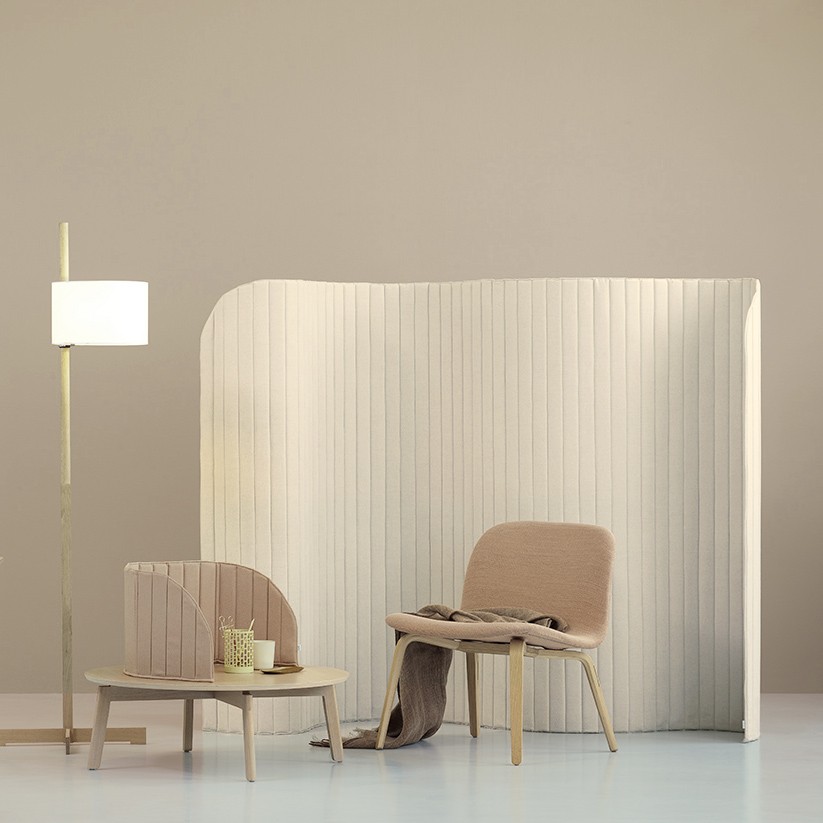 Focus is a textile table screen with a flexible design that makes it possible to give the screen the desired shape. It is easy to fold and store.