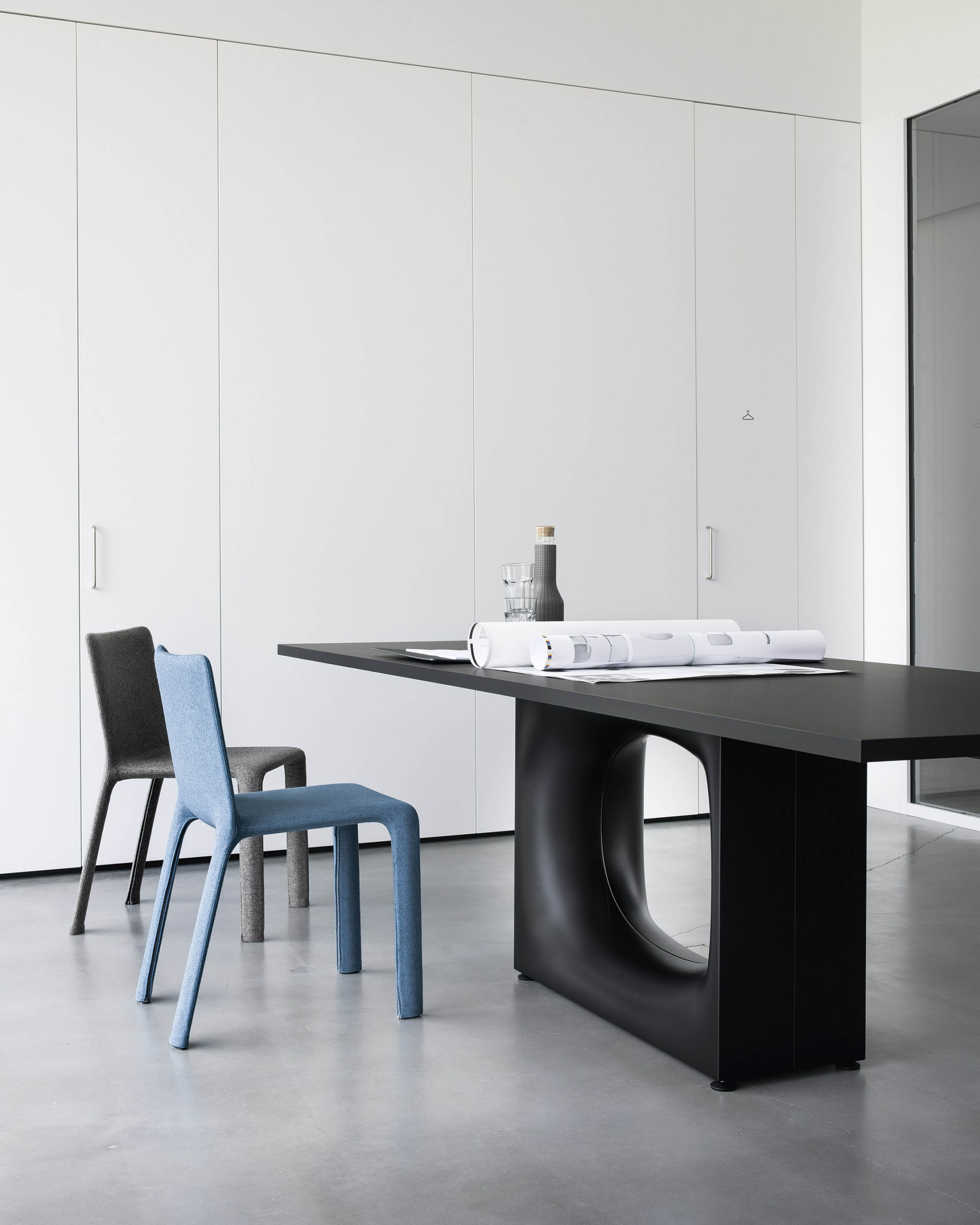 The combination of Kristalia’s technology with Kensaku Oshiro’s creativity has led to Holo: a table featuring an original base and an oval hole, with a softly moulded shape in sheet metal, made using a process that involves many moulding and bending phases.