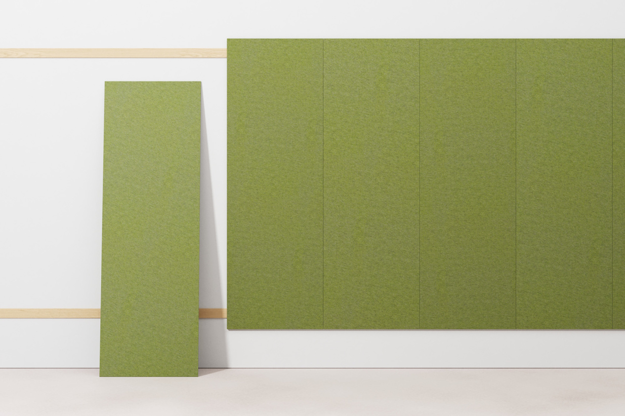 Mute Flat brings acoustic control to walls in its most direct form. The panel is made from PET felt, a soft and porous material with effective sound-absorbing properties. No pattern, no profile, just a clean surface that absorbs noise and integrates quietly into any interior. Mount it flush to the wall or with a cavity for improved performance. Suitable for offices, open-plan spaces, restaurants, and anywhere speech clarity matters. Available in 11 colours to blend with or contrast against your material palette.