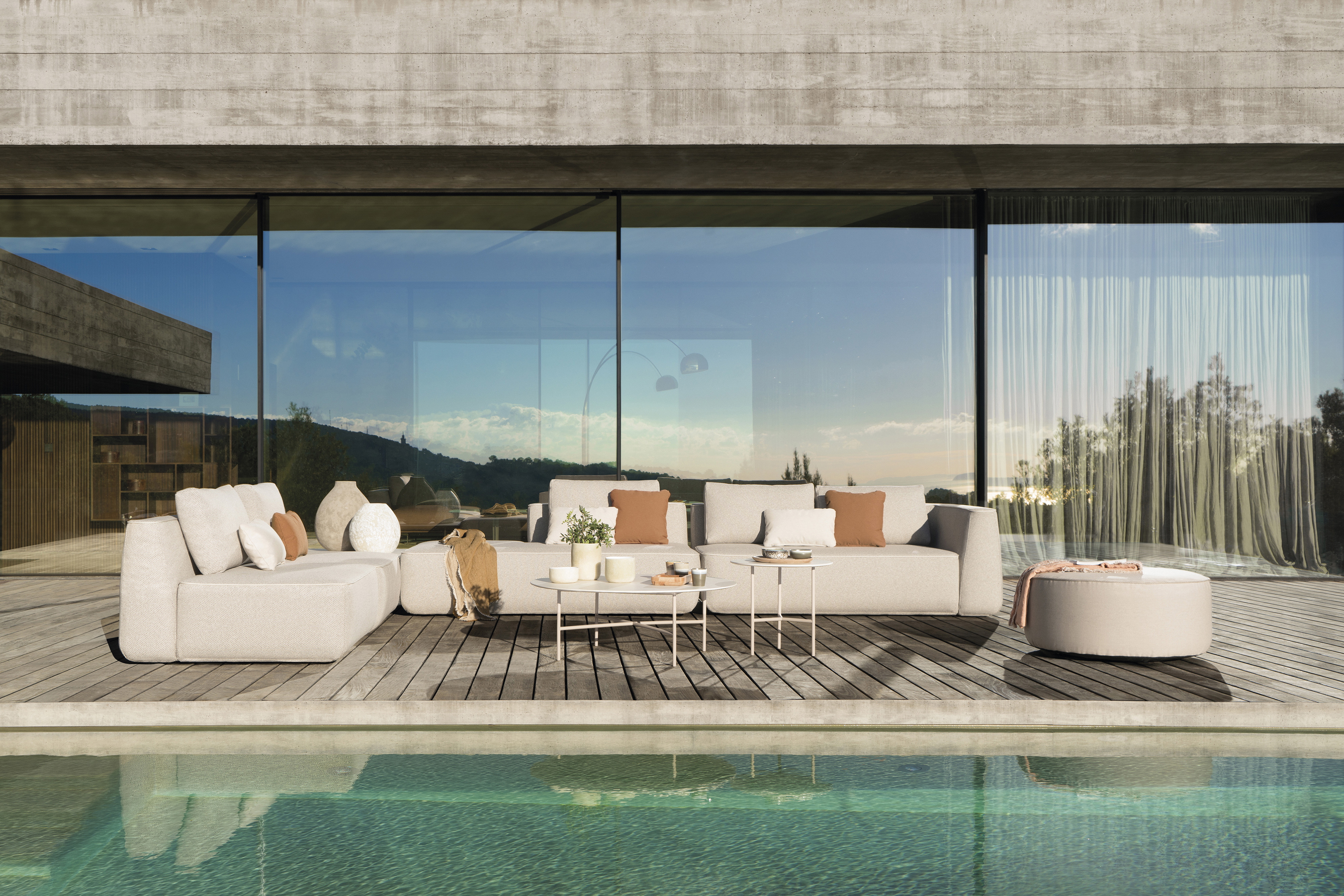 With its soft, generous volumes and contemporary silhouette, it introduces a welcoming and informal character to terraces, hospitality lounges, and residential outdoor settings. Designed to integrate seamlessly within modular compositions, it allows designers to create fluid layouts that prioritize comfort without compromising on visual coherence.Module made of high resistance aluminum tube and upholstered with foam of different densities. Possibility of customization through a wide variety of technical fabrics completely suitable for outdoor use.