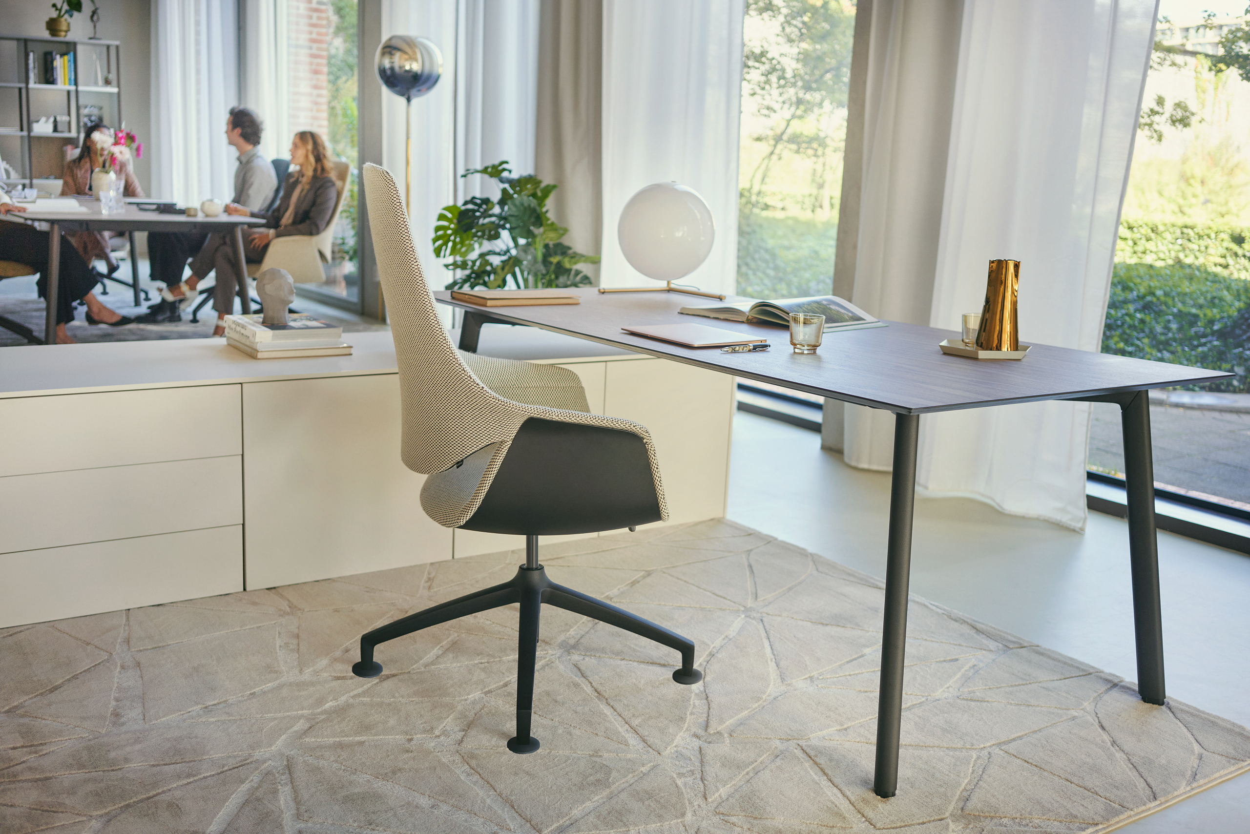 Complemented by se:vision storage, a consistent design concept is created that not only offers space for efficient organisation, but also impresses through high-quality materials such as Fenix surfaces, delicate edges and elegant colours. In this way, se:vision reflects the aspiration to create workstations for modern managers that radiate status, personality and style –perfectly aligned with individual needs and corporate identity.